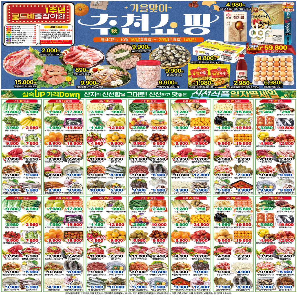 디지알에이디는 단순한 인쇄물이 아닌, 마트의 매출 상승을 돕는 전략적인 홍보물을 만듭니다. 9주년 감사 세일, 가을맞이 특별전, 진짜 반값 할인 등 테마에 맞는 맞춤형 광고를 경험해 보세요.