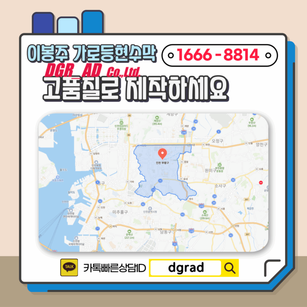 인천시 가로등현수막, 부평구 가로등현수막! 중요한 강연, 축제, 행사 홍보를 앞두고 계신가요? 고품질 디자인과 선명한 인쇄는 기본, 시민들의 불편을 최소화하는 꼼꼼하고 전문적인 야간 시공까지! 가로등 현수막의 모든 것, 이제 디지알에이디와 상담하세요.